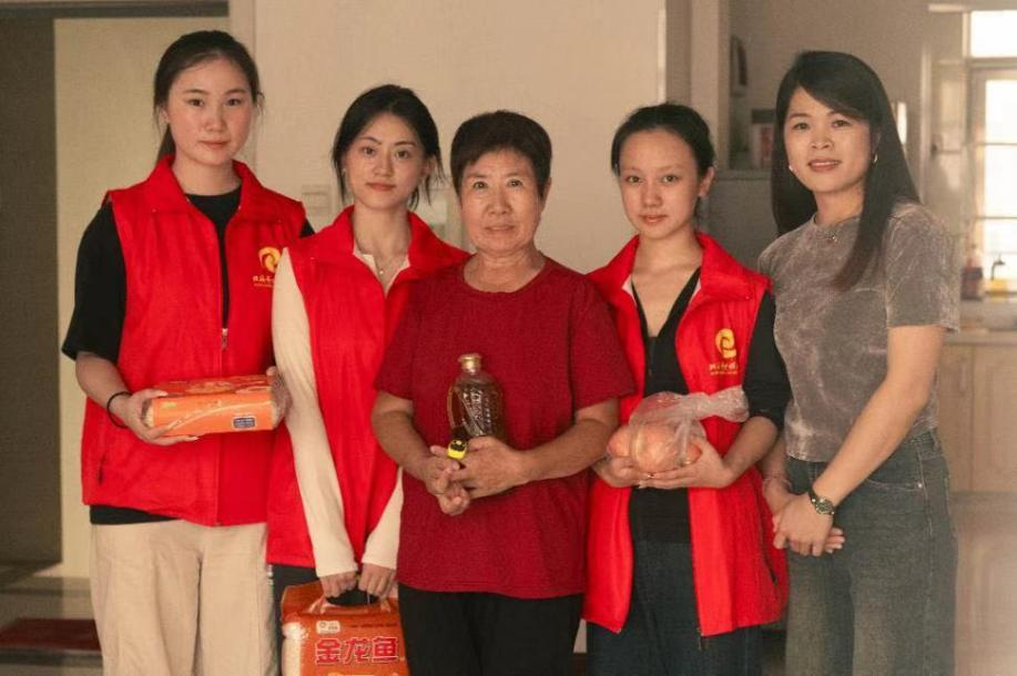 10月10日下午,由舞蹈学院党支部书记宋慧敏老师和舞蹈学院分团委书记史晓菲老师带领的志愿团队,携带着捐赠物资来到了橄榄苑社区,志愿者们拜访了居住在这里的老人们,与他们亲密交谈,并且送上节日祝福和礼物。