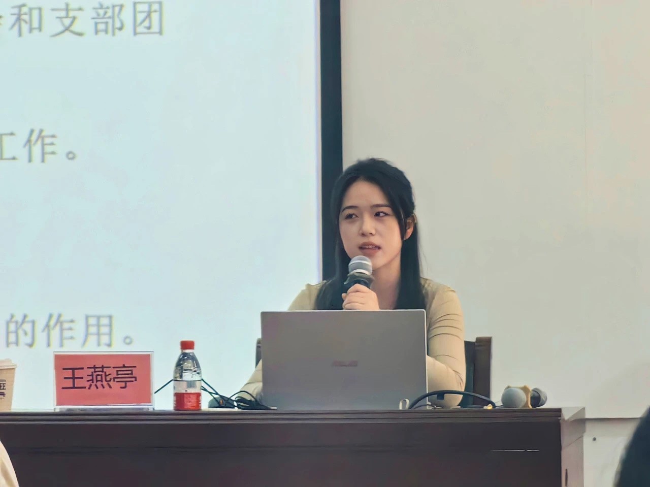 史晓菲老师以《聚焦团支书工作引领青年,服务青年》为题,讲解了关于发展团员、团员转接的对接工作以及团日活动开展过程中出现的常见问题及解决方式。最后史晓菲老师介绍了桂志愿、三下乡、西部计划等志愿服务,鼓励同学们积极探索,扩大有利于团队发展的活动,引导青年树立正确的价值观,提升社会责任感和历史使命感。