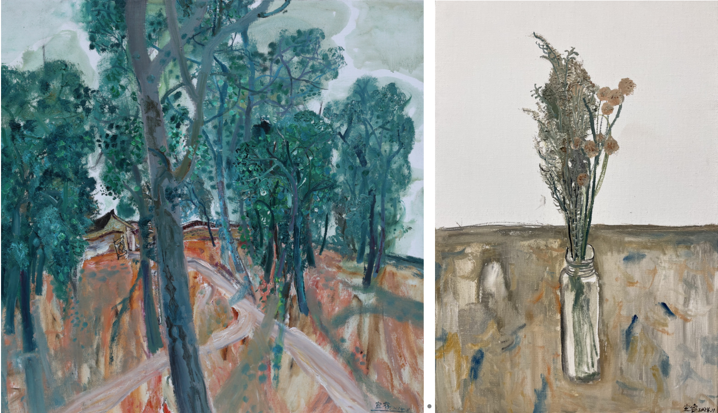 《扶疏若梦》(布面油画 80cm×80cm 2024年)                                                                                        《花》  (布面油画60cm×40cm 2024年)