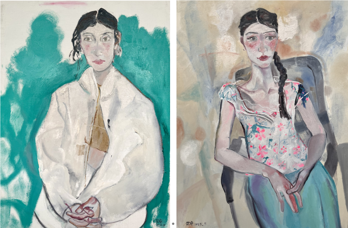 《失焦的瞳·女孩》(布面油画 80cm×60cm 2024年)                                               《失焦的瞳·舞者》(布面油画 80cm×60cm 2024年)