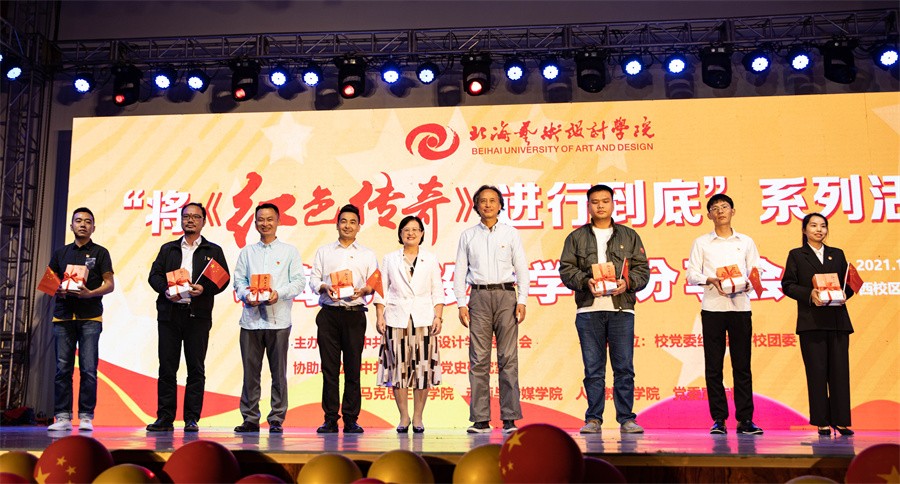 党委书记张阳在致辞中表示,学校党委对“将《红色传奇》进行到底”系列活动举办高度重视,把此项活动开展作为学校党史学习教育下半年重要活动进行重点谋划、精心安排,先后组织开展了“红色传奇主题党课(团课)”、“涠洲岛专业实践红色主题教育”、“推广红湾主题阅读体验”、“开展红色画卷书画评比”、“建设红色传奇校园文化长廊”、“推动红色传奇融入教学”等“七个一”活动,将革命传统教育阵地化、有形化、成果化,让学校广大师生更深切感受红色力量,了解广西先烈为党和新中国做出的卓越贡献,感悟故事背后的革命精神和家国情怀。