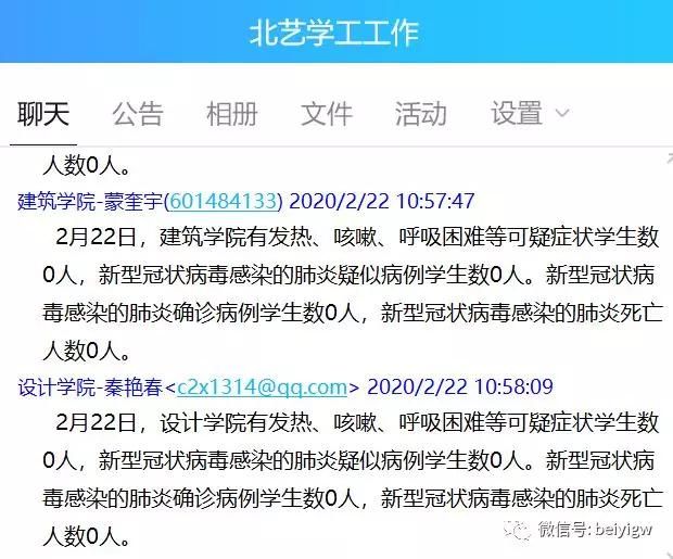 严格落实执行“日报告”、“零报告”制度,重点跟踪湖北疫区学生的每日健康动态。由班主任单独建群或电话与学生保持联系,形成“班主任——辅导员——二级学院——学工处”逐级上报湖北籍学生每日健康动态的工作模式,确保能够及时、准确、动态掌握学生情况,确保学生疫情防控工作迅速、有效落实。