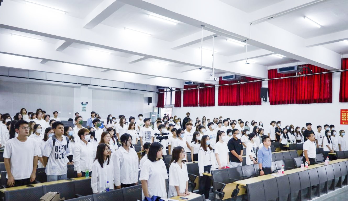 大会第七项,为更好地凝聚力量、振奋精神,建筑与环境艺术学院分团委学生会及参与本次大会的老师们全体起立奏唱校歌。随着大气磅礴、旋律优美的音乐响起,用歌声展现出了青春的热情,也唱出了对未来的憧憬。
