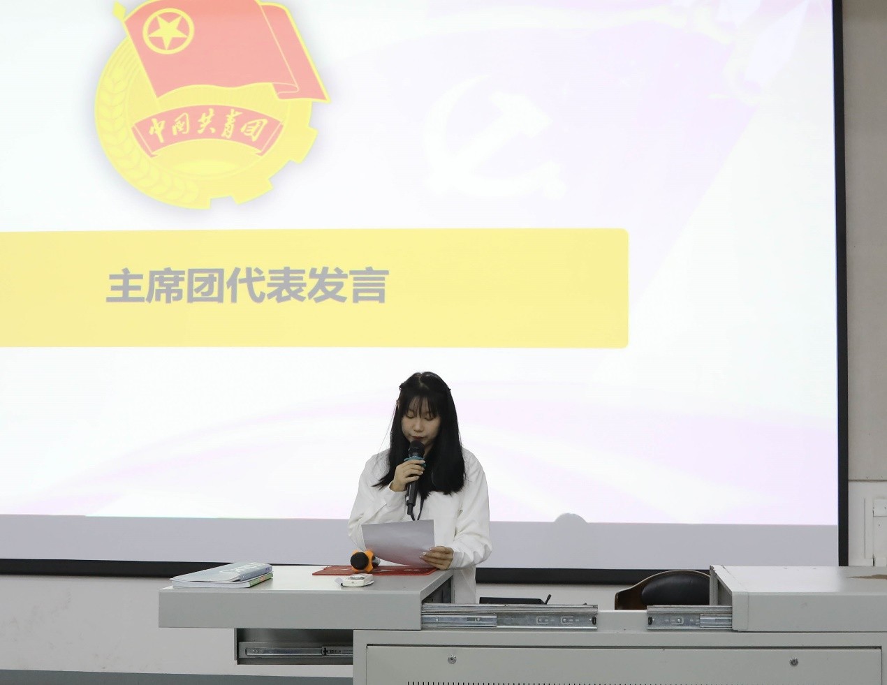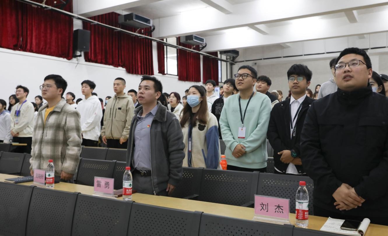 大会第一项,全体起立,奏响共青团团歌。共青团是青年的引路人,促进青年的健康成长,同时也是党的助手和后备军,是党联系青年的桥梁和纽带。