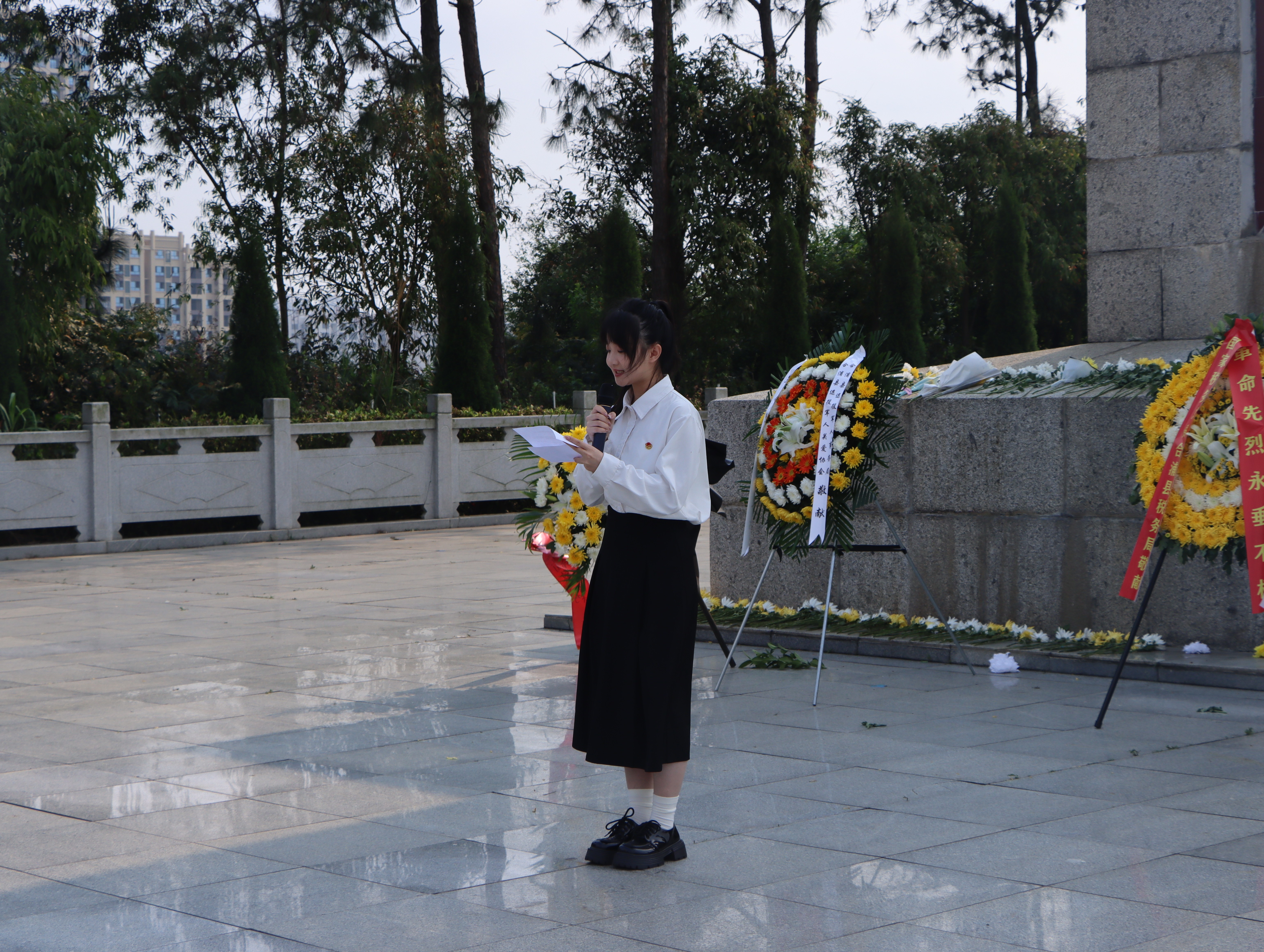 党委书记范徽忠发表了讲话,回顾了烈士们的英勇事迹,强调了铭记历史,缅怀先烈,珍爱和平的重要性。他表示,烈士们用鲜血和生命换来了今天的幸福生活,我们应该懂得我们所肩负的历史责任和历史使命,珍惜现在的生活,继承和发扬烈士们的革命精神和爱国情怀。