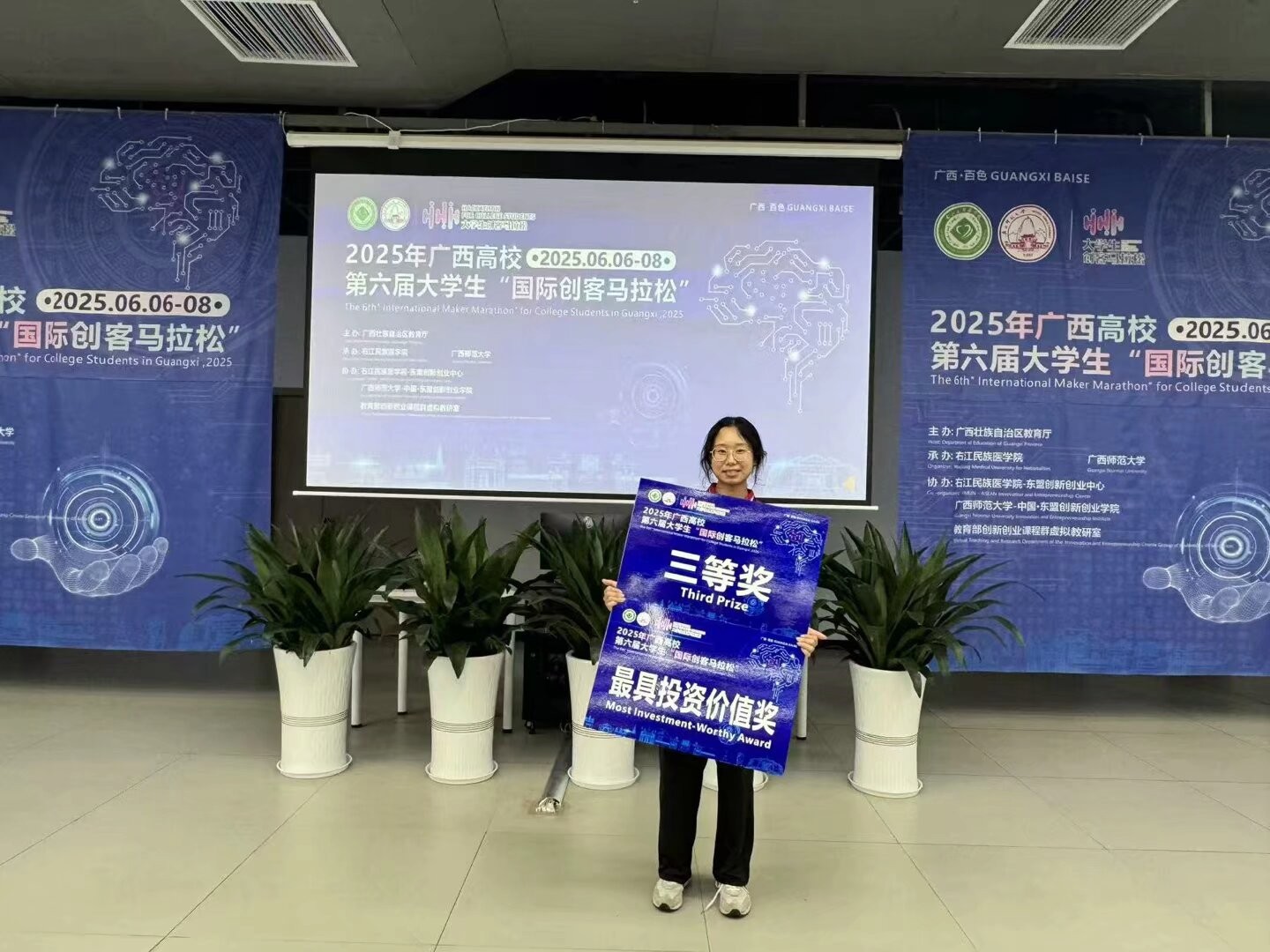 近日,由广西壮族自治区教育厅主办,广西师范大学、右江民族医学院联合承办的2025年全区高校第六届大学生“国际创客马拉松”活动在右江民族医学院百东校区开幕。活动吸引了来自66所高校的161名师生参与,其中包括23名国际留学生。我校汉语言文学专业学生周盈姿在活动中表现突出,喜获最具投资价值奖和三等奖。