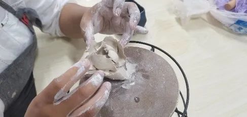 (团队师生在产品陶瓷工作室学习瓷花技艺)