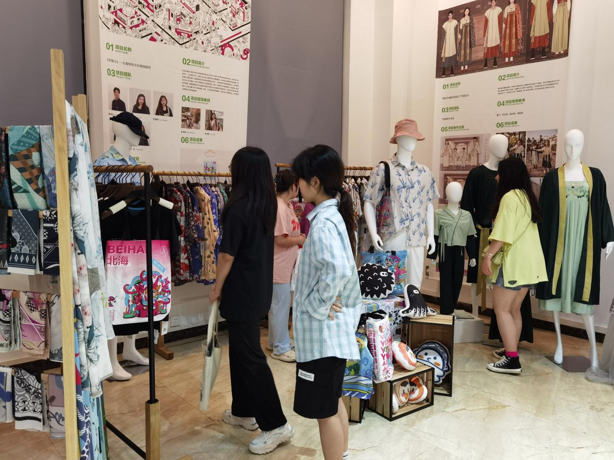 2022年5月23日,北海艺术设计学院设计艺术学院大学生创新创业教育作品展销会在北艺服装楼一楼创新创业展销中心拉开帷幕。