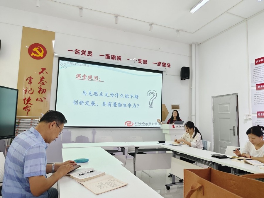 第二阶段是雷冬梅、聂子琛老师分别对导论和专题一的教学思路设计、教学重难点等内容进行了详细讲解,同时在教学课件中融入了党的二十届三中全会精神内容,并呼吁各位老师根据自身实际和所带班级专业情况对课件进行个性化改造。与会老师围绕课程相关重点内容进行了热烈讨论,杨兴华副教授和刘兴仁副教授针对第一章的相关章节内容提出了独到见解和修改建议。