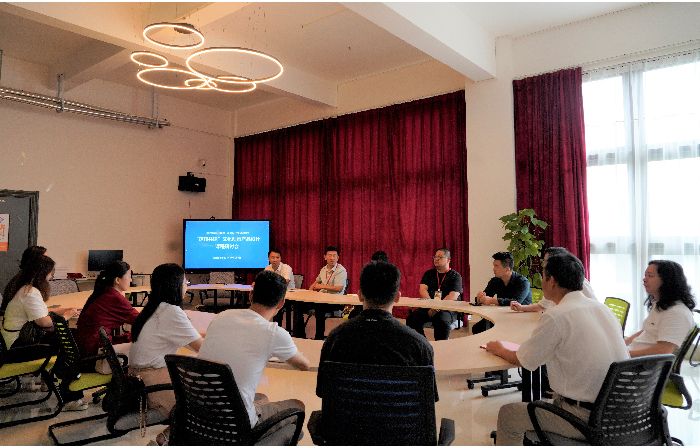 随后,各位领导陪同廉世明馆长移步到设计艺术学院创意工作室与设计艺术学院骨干教师们就文创产品设计课程教学成效、教学方法以及课程项目合作事项展开交流。