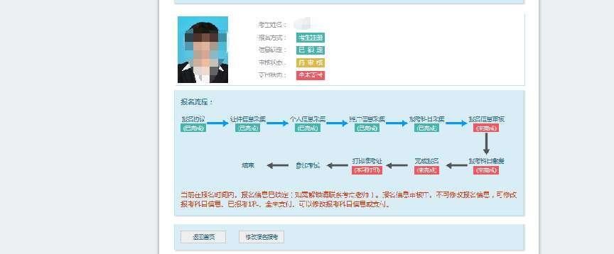 考生信息变为“待审核”状态,此时考生不能修改报名信息。