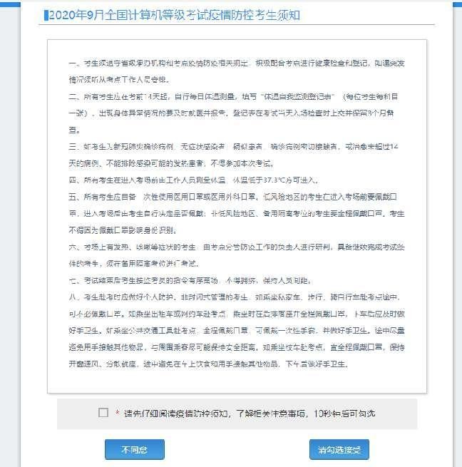 考生应及时打印准考证了解考试防疫要求,“广西招生考试院”网站“通知公告”和“全国计算机等级考试”栏目将在考前发布考试防疫须知。