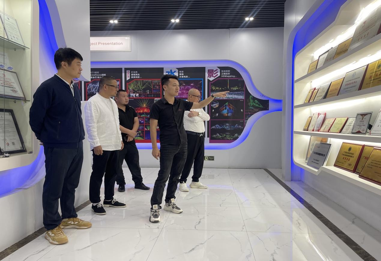 在调研过程中,王照伟院长和梁保明教授受到了夜太阳公司的热情接待。公司负责人详细介绍了公司的发展历程、业务范围、技术创新以及市场前景等方面的信息。夜太阳公司作为国内舞台灯光音响行业的领军企业,一直致力于研发和生产高品质的灯光音响设备,并在国内外市场上取得了显著的业绩。
