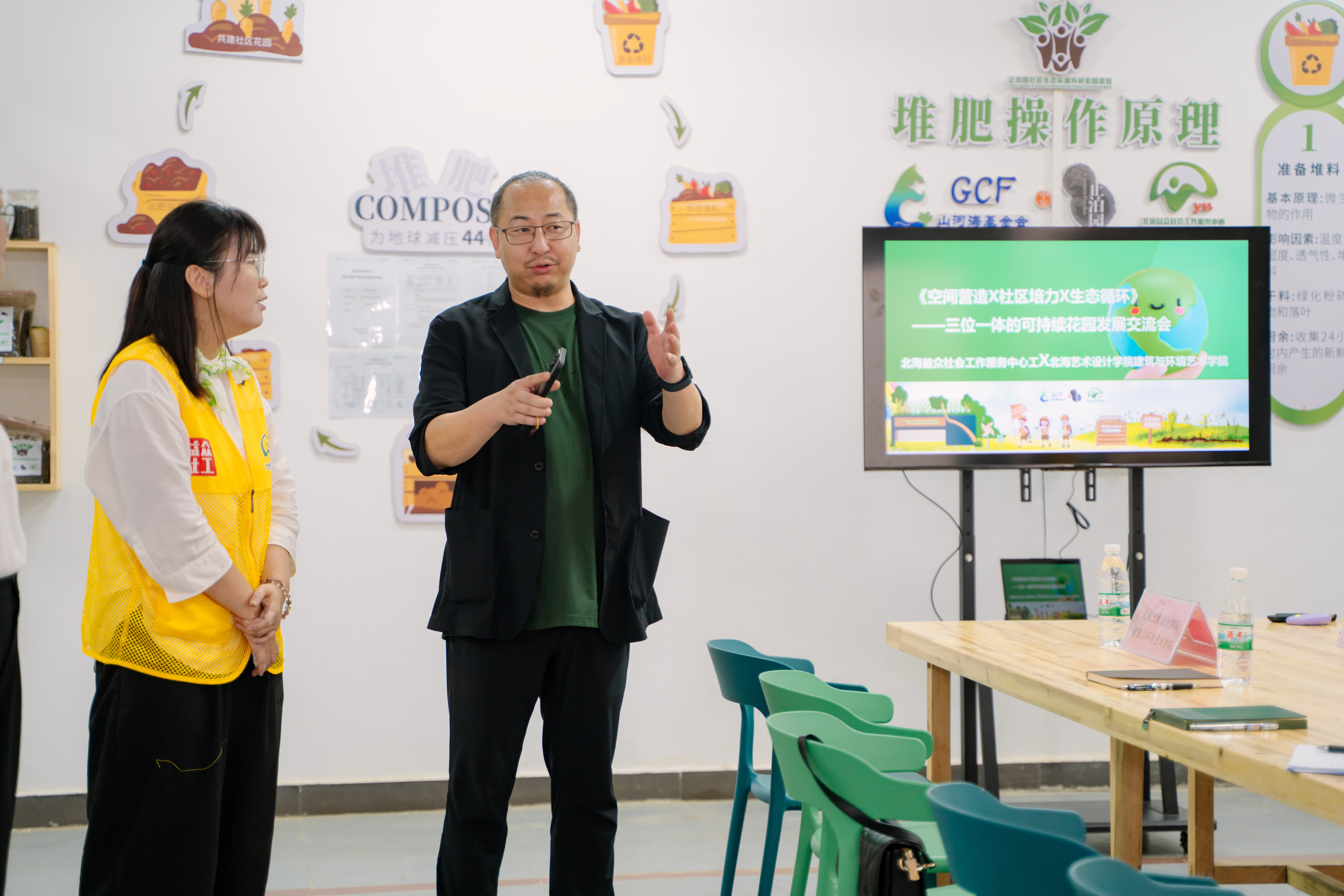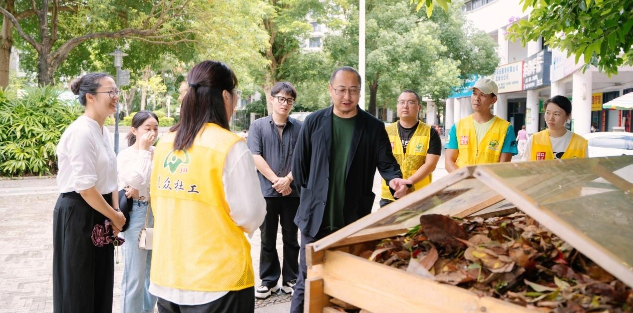 在止泊园社区项目负责人黄光燕的带领下,张院长及教师团队亲自参观了止泊园社区的堆肥示范点,对示范点的基本情况以及堆肥箱的运作原理进行了全面而专业的了解。