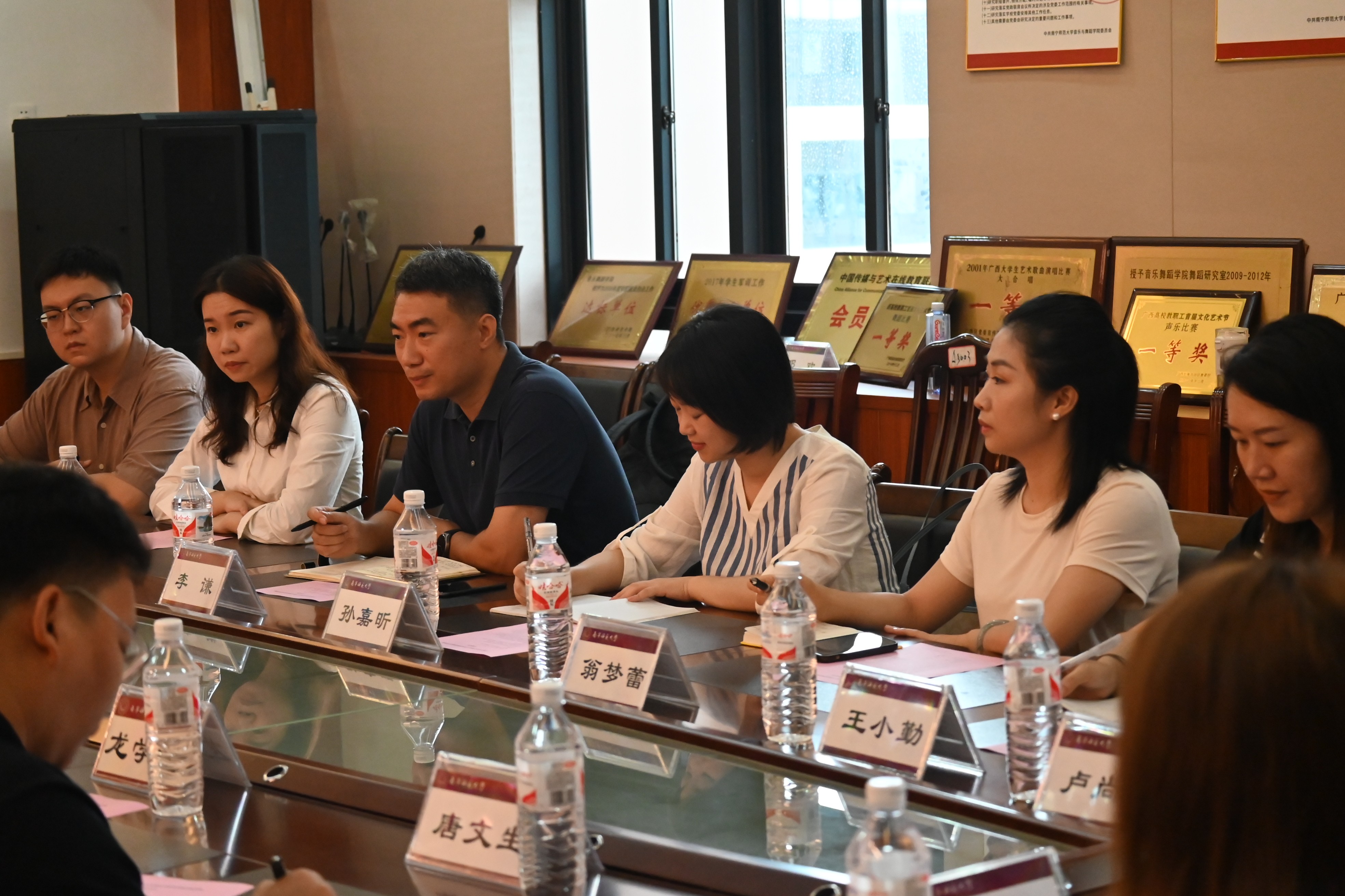 在参观结束后,双方进行交流座谈。陈宇书记代表南宁师范大学音乐与舞蹈学院对我院一行的到访表示热烈欢迎。黄妙秋院长考察团详细介绍了南宁师范大学音乐与舞蹈学院发展历程、师资队伍、专业建设等方面的情况及办学特色探索举措和教学成果。随后双方围绕音乐教育专业建设发展、舞蹈专业人才培养学生见习实习研习及当前专业发展所遇到的瓶颈问题进行了深入探讨。