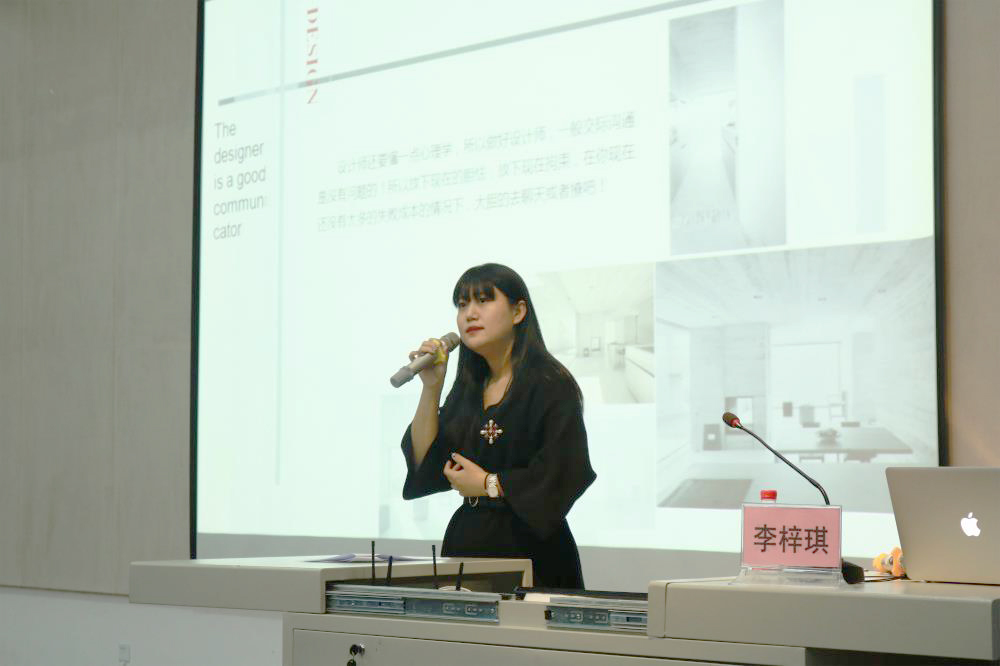 讲座接近尾声时,李梓琪教授还不忘为同学们强调“什么才是设计”——你的气质里藏着你走过的路,读过的书,爱过的人。其实设计也是一样的,你读过的书,听过的音乐,经历的事情,爱过的人,最后组成了你的审美观,你的价值观,他们植入你的血液,最后体现在你的作品当中。随后,李梓琪教授还在讲座中耐心解答了同学们的提问。