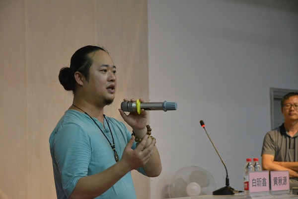 随后,黄秋源导演用幽默风趣的语言调动了全场的气氛。他指出,目前同学们对导演普遍存在误区。他先介绍了影视制作团队内部人员的职位分工,然后指出导演是一部影视作品的组织者和领导者,是搬运工,也是创造者,一部影片的质量与导演的素质和修养密不可分。