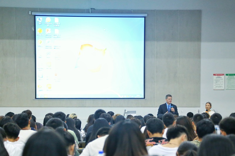 交流中,Richard Lynn Gee教授通过照片给同学们详细介绍了芬兰迪亚大学建校的初期历史、校园地理位置和天气状况等,并通过视频向师生们展示了芬兰迪亚大学的校园环境和校园生活,使同学们更直观地了解芬兰迪亚大学。