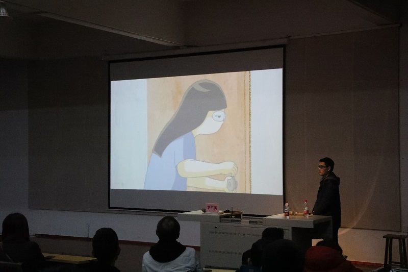 随后,艾胜英教授播放了学生优秀动画短片作品《和斑马一起奔跑》、《吃早饭啦》、《我和老爸》、《电梯口》、《一指城》等,希望同学们要善于把握住生活中的每一个灵感瞬间,用动画的语言将其延伸,从而表达其深意与艺术性。