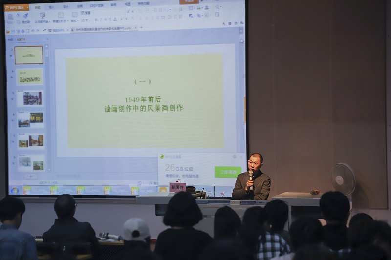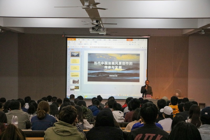 2018年4月8日晚上7:30于西校区伦理楼107,湖南大众传媒学院硕士生导师蔡国胜教授莅临我校名师大讲堂,给我校师生带来了一场题为《当代中国油画风景创作的传承与发展》的精彩讲座。广大师生现场聆听讲座。