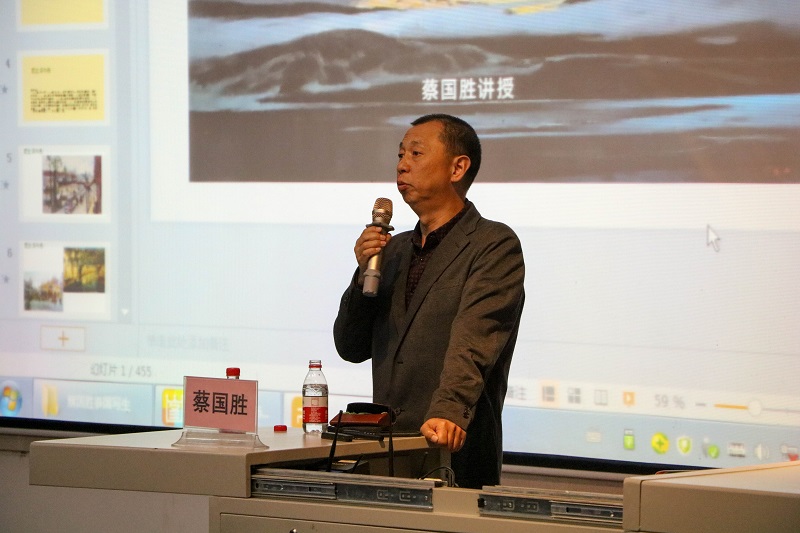 讲座一开始,蔡国胜教授提出了本次讲座围绕当代油画发展的历程展开,并提出最关键的是为了提升同学们对油画的审美和创作能力。蔡国胜教授首先分享了自己的一些优秀作品,与此同时他细心的为同学们讲解了在绘画过程中要注重的一些问题,比如:构图,明度对比,细节的变化,以及重色与浅色的运用等。引起同学们浓厚的听讲兴趣。