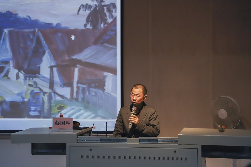 蔡国胜教授向同学们分享了许多名人画家的风景油画作品。他按照油画发展历程为大家讲述了从1949年新中国成立到现代风景油画的七个历史阶段。蔡国胜教授的讲述非常生动具体,他从新中国前后油画类型的其中之一风景画创作开始,讲述当时油画的创作大部分都受到了西方工业革命的影响,许多风景油画都表现出了印象派的艺术手法。接着讲到后来的赴俄罗斯留学时期,马科夫摩西培训班的成立,“罗训班”后第三代油画家的创作,再到国美博巴油画班成立,新世纪前后央美高研班油画的多样性的时期,以及油画语言尝试推动市场需求激发油画风景的“写生热”。这一系列发展历程都足以说明我国风景油画绘画水平不断地发展进步。