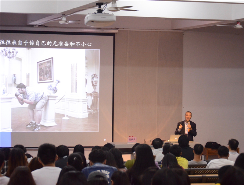 2018年11月24日晚19:30,我校西校区伦理楼107座无虚席。北京电影学院摄影学院新闻与媒体制作教研室主任程铁良教授带来了一场题为《新闻摄影采访中不能不说的故事——新闻摄影记者的得与失》的精彩讲座,本次讲座由美术学院副院长龚为主持。