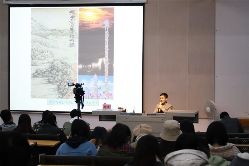 讲座开始前,刘杰教授通过一些有趣的图片向同学们分享了他对设计行业的理解和思考,阐述了设计行业的设计流程,并强调了园林景观设计流程分为方案设计和施工图设计两种概念。“搜尽奇峰打草稿,博览群书好吹牛”,刘教授幽默的语言让同学们明白了多采集素材,博览群书的重要性,这样才能迸发更多灵感,创造出佳作。