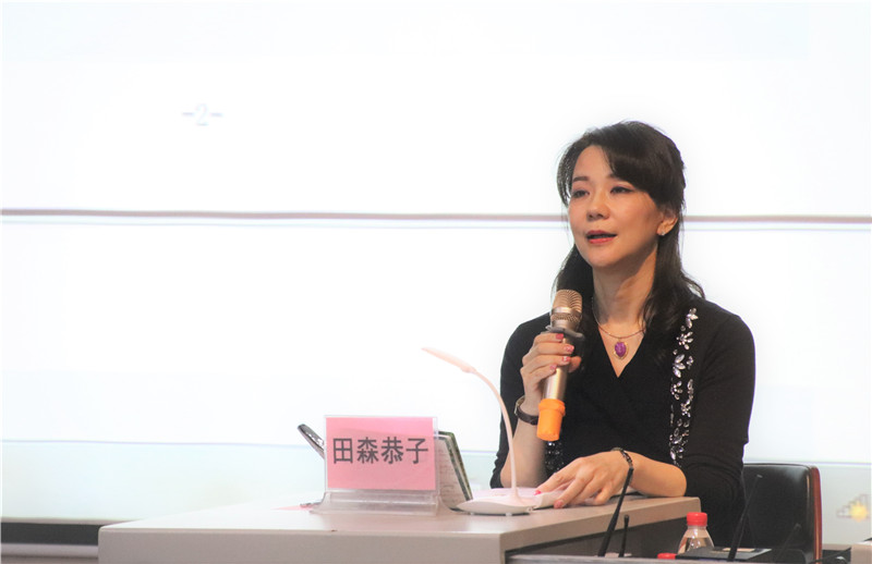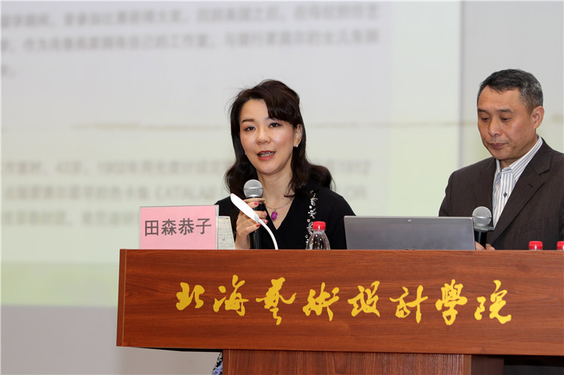 讲座开始前,胡胜副校长对田森恭子女士远道而来并莅临我校讲学表示热烈欢迎,并向大家介绍了田森恭子女士的职务及学习经历。他强调学习艺术设计的同学,最重要的就是对于形与色的把握,打好设计的基础,希望本次讲座能够使大家有更多思考并从中受益。