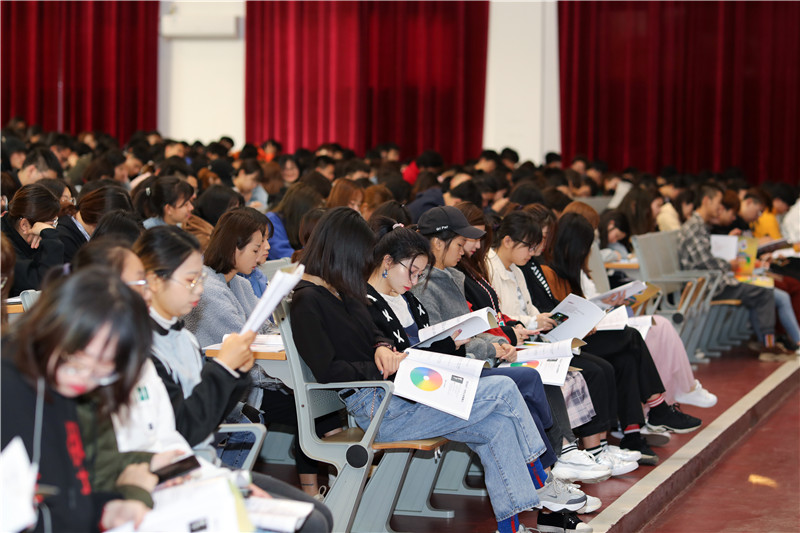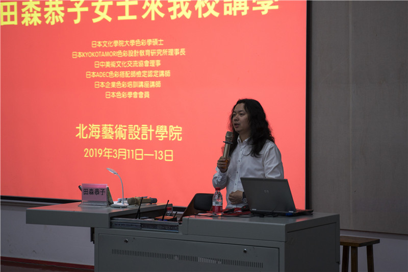 2019年3月11日晚,日本文化学院大学色彩学硕士田森恭子女士莅临我校,为我校师生带来了《从两种色彩体系开始学习配色基础》的精彩讲座,讲座由肖小健老师进行翻译,副校长胡胜主持。