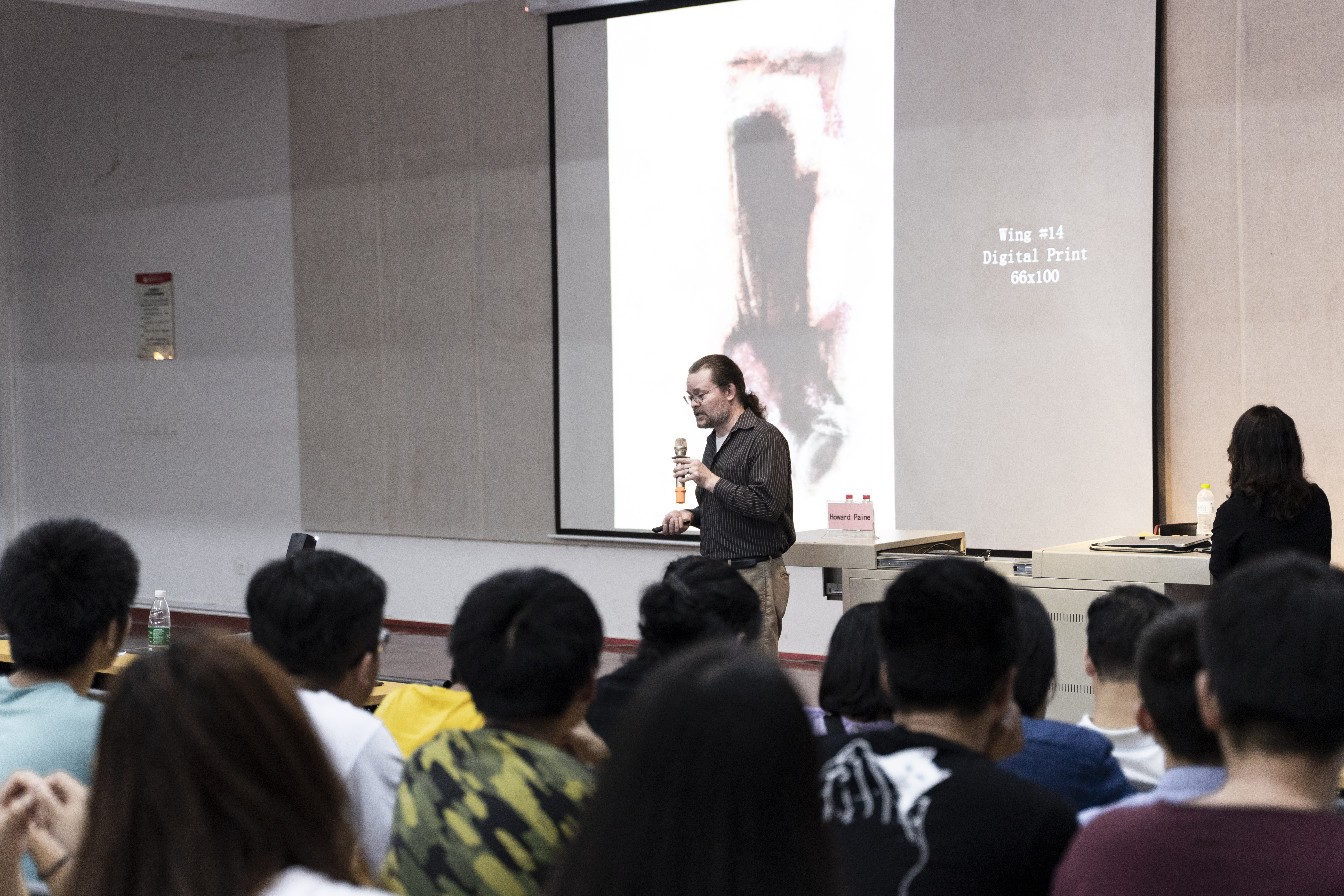 2019年5月7日晚上7:30分于我校西校区伦理楼107。美国内不拉斯加大学艺术学院终身教授霍华德.佩恩先生给我校师生带来一场题为《艺术与影响》的精彩讲座。本次讲座由胡胜副院长主持,杨海燕女士翻译。