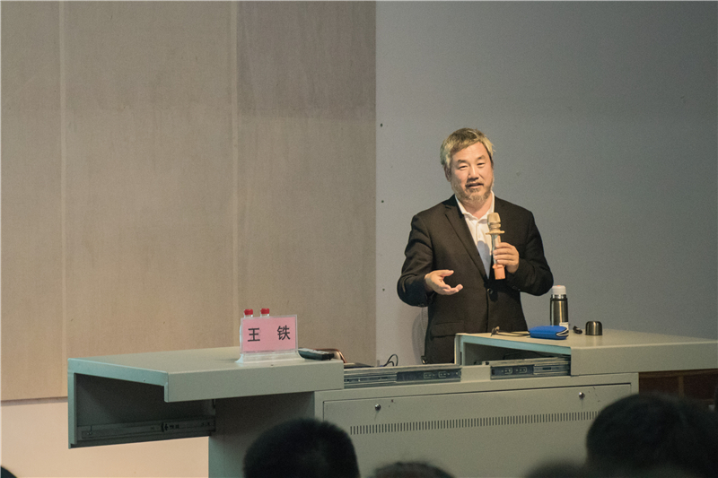 讲座开始前,王铁教授谈到中国的设计教育正在不断地进步,而智能时代的到来,为设计行业提供了便利的同时,也带来了挑战。新时期下,教育领域要培养全学科、指挥型人才。王铁教授告诫在场同学们,学设计需要经得起孤独与寂寞,才能走向成功。