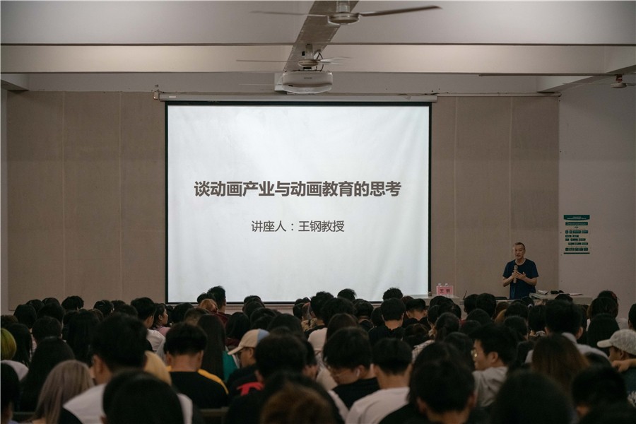 临近讲座结束,王钢教授简单分析了当代动画产业形势。他认为,当代动画产业更专注于现实题材,不必执着于古代神话传说,尝试开发新的故事题材,他鼓励同学们努力学好专业知识,创作出更多精彩的作品,为中国动画产业贡献自己的力量。