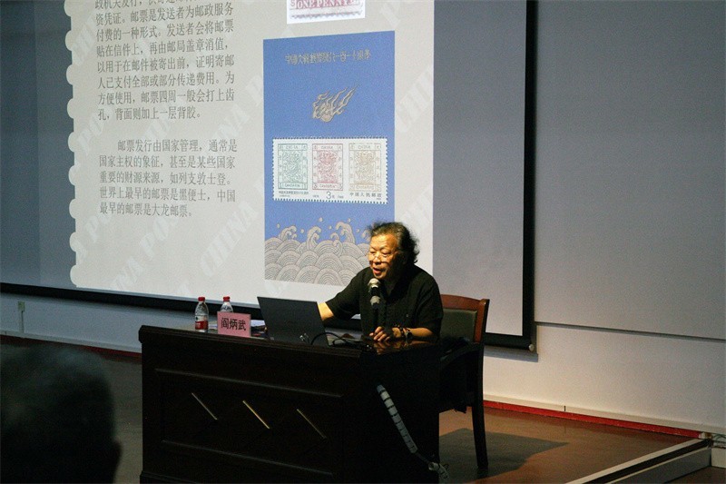 阎炳武教授从邮票的本质意义介绍方寸天地间的神秘色彩。他指出,邮票是由各个国家邮政机关发行,并以供寄递邮件服务付费的形式运作,其背后体现着一个国家或地区的历史、科技、经济、文化风采、风土人情、自然风貌等特色,邮票的小小方寸空间,能包揽很多内容。