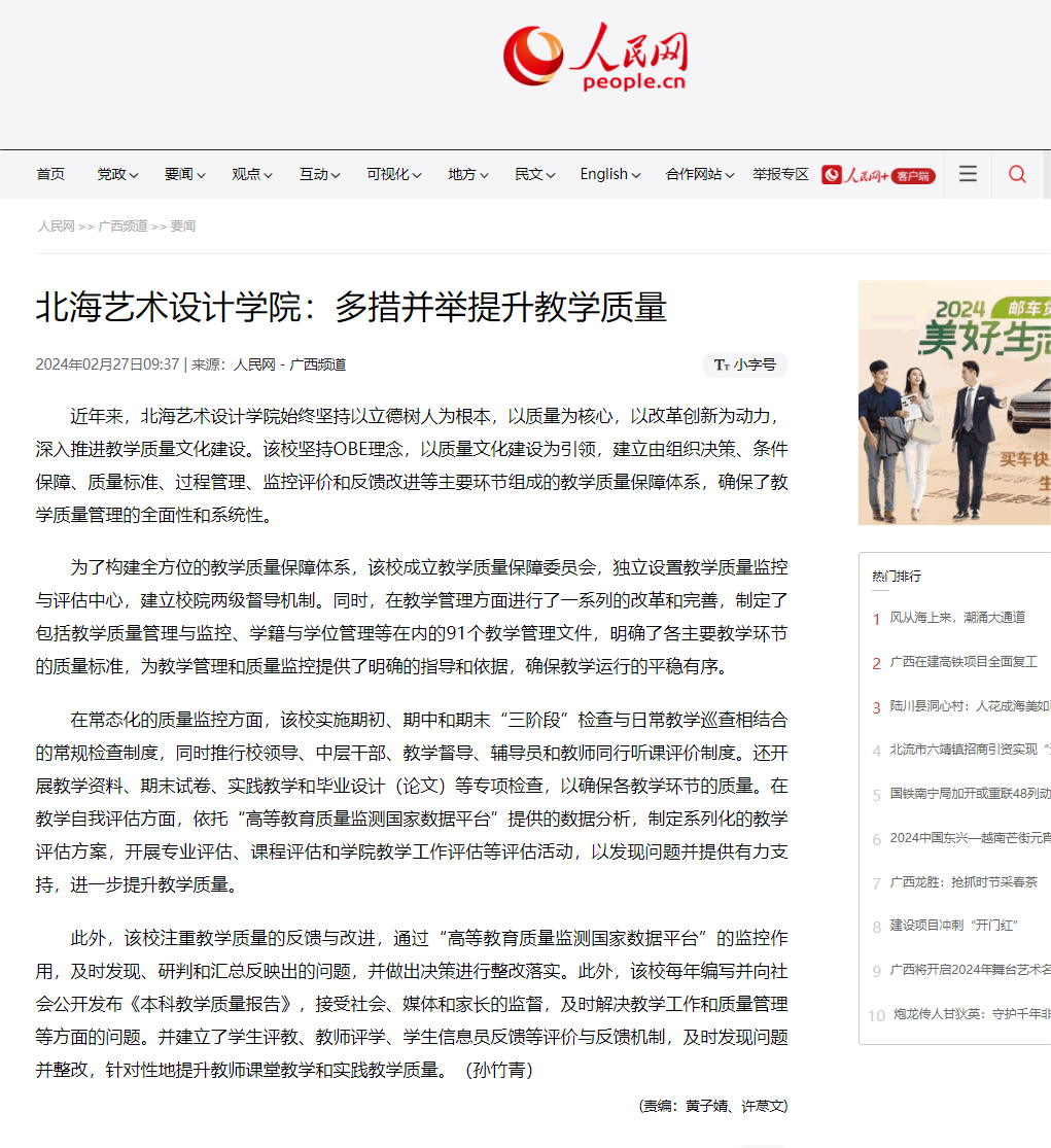人民网:北海艺术设计学院学生在全区大学生交通安全宣传作品创作大赛中获奖