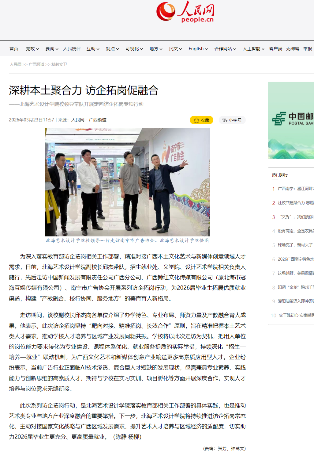 人民网:深耕本土聚合力 访企拓岗促融合——北海艺术设计学院校领导带队开展定向访企拓岗专项行动