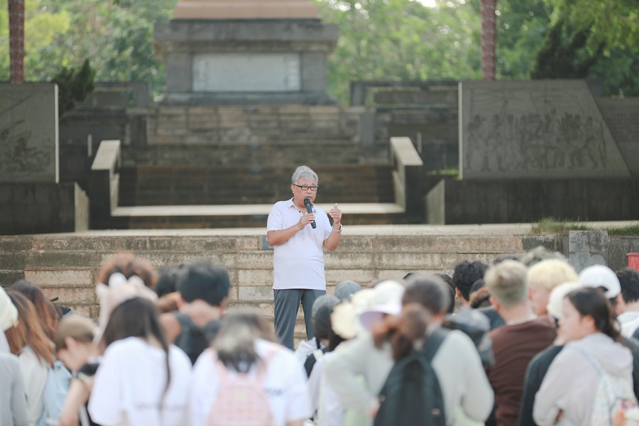 在讲授过程中,姜献生教授重点讲述了“中国共产党领导斜阳岛农军反抗国民党反动派的斗争”“从日本侵略者手中夺回涠洲岛”“从国民党军队中解放涠洲岛”三段历史。他强调:中国共产党领导的斜阳岛农军与岛民血肉相连、心心相融、同船合命,为了人民不惜牺牲自己的生命,以鲜血和生命践行了中国共产党人全心全意为人民服务的宗旨。涠洲岛人民联合侵占涠洲岛日军中的台湾籍士兵举行起义,充分说明了台海两岸是一家,台湾人民没有忘记自己是中国人的根本。解放军数十名战士为解放涠洲岛而把生命永远地留在了这块土地上。我们从未忘记也绝不会忘记这些曾经在涠洲岛浴血奋战的前辈和先烈们,请勿忘历史、缅怀先烈、珍爱和平、砥砺奋进。
