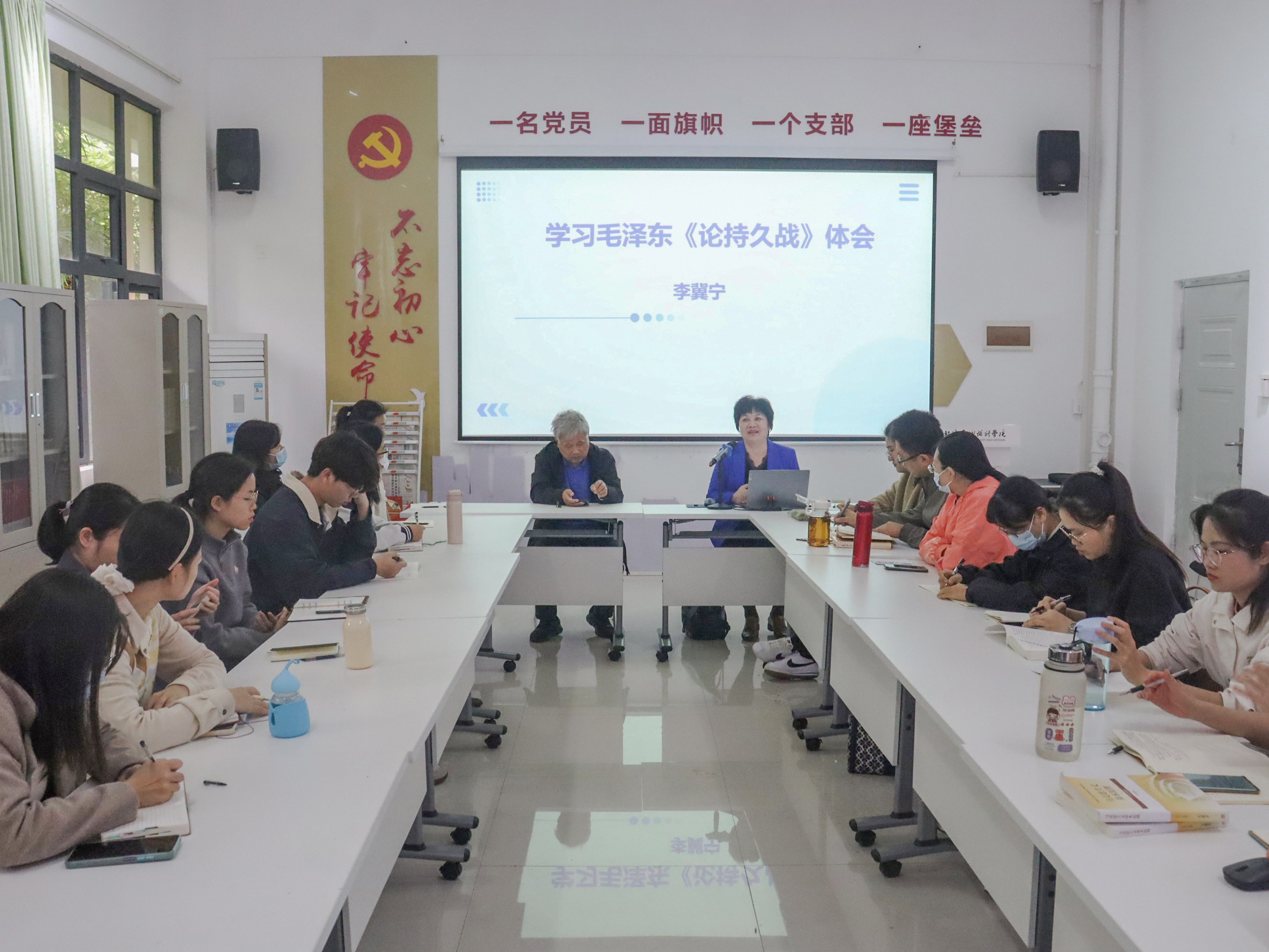 另外,她结合自身的教育经历,分享了《论持久战》在教学实践中的具体应用。她强调,该著作是抗战争时期的重要指导文本,也是大学生思想政治教育的经典教材引导学生理解伟大建党精神和人民战争观的重要性。活动最后,李冀宁教授引用《论持久战》一系列经典语句进行精彩收尾。