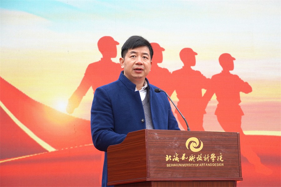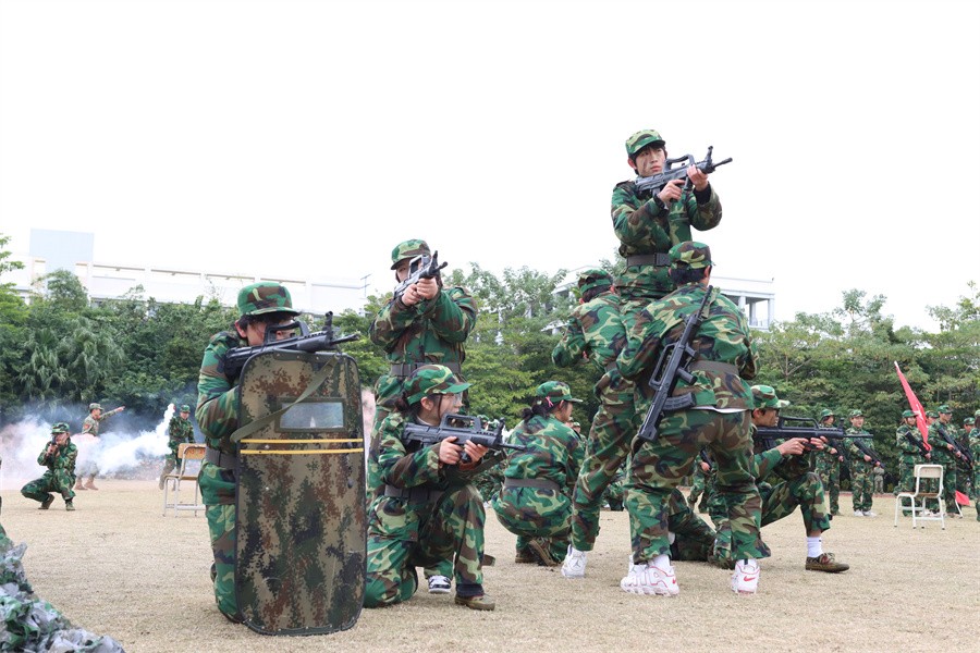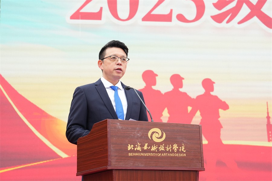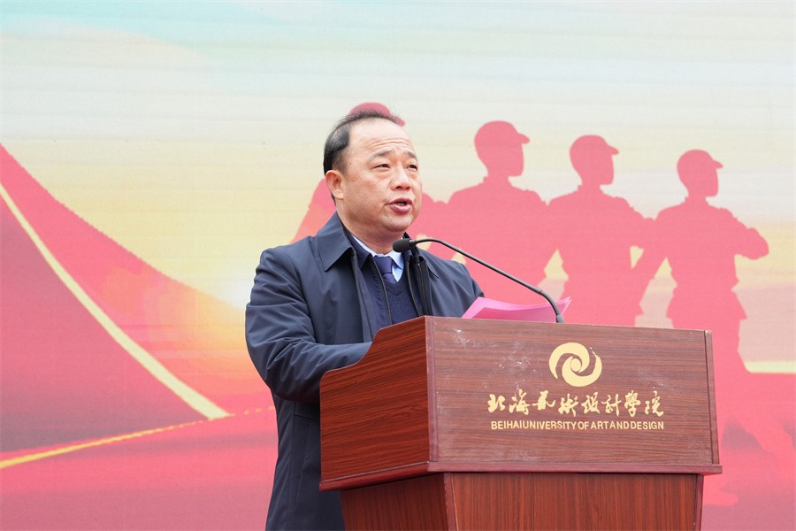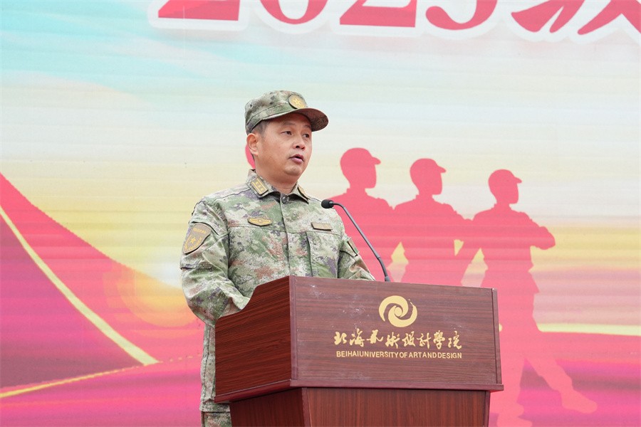 北海市海城区人民武装部部长邝伟乾在讲话中表示,此次军训时间安排紧、训练任务重,是一次体力与意志的较量、纪律与服从的检验。军训的同学们在军训期间尊重教官,严格训练,听从指挥,敢于吃苦,发扬了团结互助的优良传统,展示了同学们的良好精神风貌,激发了热爱国防,保卫国防的热情。他对全体参训学生能够克服困难,出色完成所有军训任务的优良表现给予了高度评价和充分肯定。他强调,学生军训是学校德育工作和素质教育的重要环节,强国必须强军,军强才能国安,国防和军队建设是国家安全的坚强后盾。他呼吁我校广大学生在完成学业后,积极携笔从戎,参军入伍,助力加强国防和军队现代化建设,在军营绽放青春梦想,实现无畏人生。