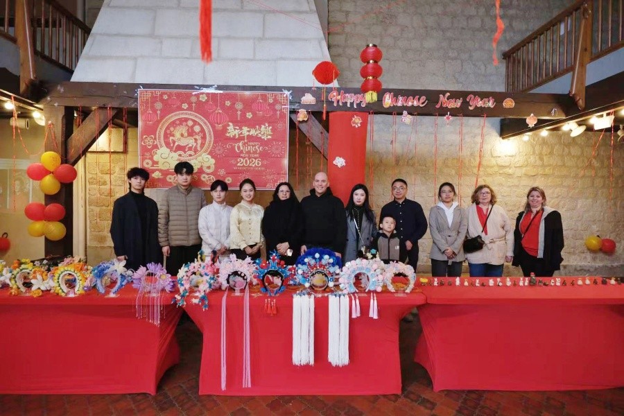 为推动中华优秀传统文化走向世界,深化中法人文交流与文明互鉴,2026年2月,北海艺术设计学院受法国塞纳-圣但尼省勒布朗梅尼尔市(Le Blanc-Mesnil)市政府及当地文化机构联合邀请,深度参与当地“2026中国新年周”系列文化交流活动。活动通过非遗手工体验、文化集市、舞台展演、文化交流等多元形式,向法国公众立体呈现中国传统艺术与非遗文化的独特魅力,为深化中法人文交流、促进文明互鉴注入强劲动力。法国塞纳-圣但尼省勒布朗梅尼尔市市长让-菲利普·朗凯(Jean-Philippe Ranquet)、第一副市长克里斯汀・塞里戈内(Christine Cerrigone)、对外关系与国际合作的副市长韩博(Bo Han)、参议员蒂埃里·梅涅(Thierry Meignen),北海艺术设计学院董事长郑念贻、汉文化传播产业学院院长陈婷婷,以及学校相关专业老师出席活动。