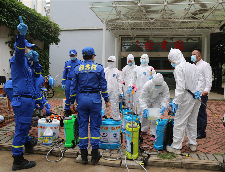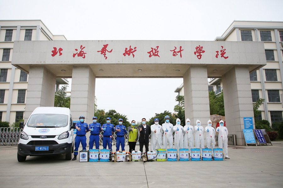 4月25日,学校邀请北海蓝天救援队对校园进行全方位、无死角消杀工作,并且对我校部分员工进行了专业的消杀培训。在北海蓝天救援队的指导下,工作组对东、西校区的教学楼、宿舍区、图书馆、机房、行政楼、工作室、实训室、隔离室、医务室、公共厕所、食堂、超市、快递点等区域进行逐一消杀作业,保证全面消杀防疫,不留死角。整个消杀工作有序顺利,确保了校园环境的安全卫生。