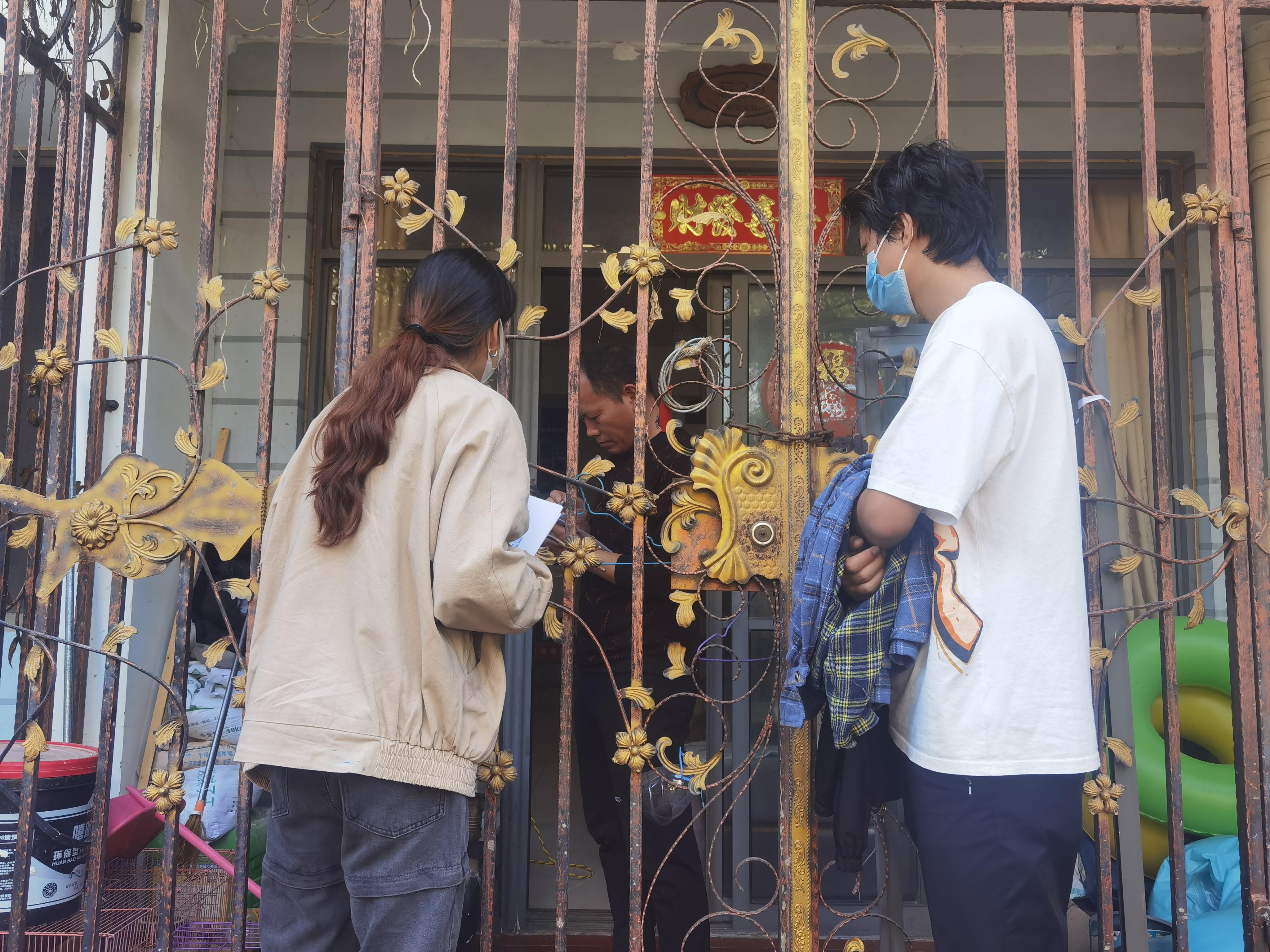 截止至17日15点整,所担任“18户居民填写调查问卷任务”,已完成18户。(许荣军 摄)