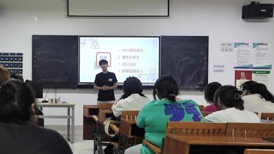 2023年9月24日,美术学院分团委组织部召开美术学院2023级团支书的培训会议。本次会议邀请了美术学院分团委副书记许荣军对美术学院2023级团支书培训。会上,分团委组织部学生干部李立静、岳蕾、王佳慧、赵雅莉针对填写材料规范、青年大学习、团日活动、智慧团建四个板块依次进行讲解。结合学生工作经验对工作过程中经常遇到的问题和解决方式做详细耐心的解释。