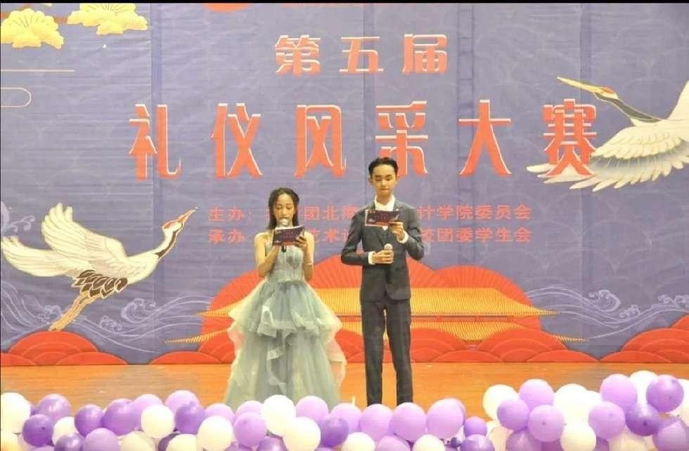 第五届“礼仪风采大赛”于12月6日晚上19:30在校礼堂隆重举办,莅临本次大赛的领导嘉宾有校团委副书记、环艺学院分团委书记唐良春以及人文艺术学院副院长兼学工办主任、舞蹈教研室主任邓欢,评委老师有学工处副处长刘玲花、团委老师陈文斌、团委老师杨美琪、美术学院副院长兼团委书记王习银以及团委副书记宋慧敏。此前已在校团委学生会公众号上展示过的参赛队伍此时将以比赛的方式齐聚在一个舞台上,再由现场直播,向全校师生展示风采,共同奏响“礼”之华章。(王云龙 摄)