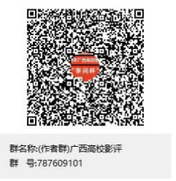 各参赛者可扫码加入广西高校学问杯影评大赛参赛作者群QQ 群:787609101(参赛者自愿选择,也可随时退出)。