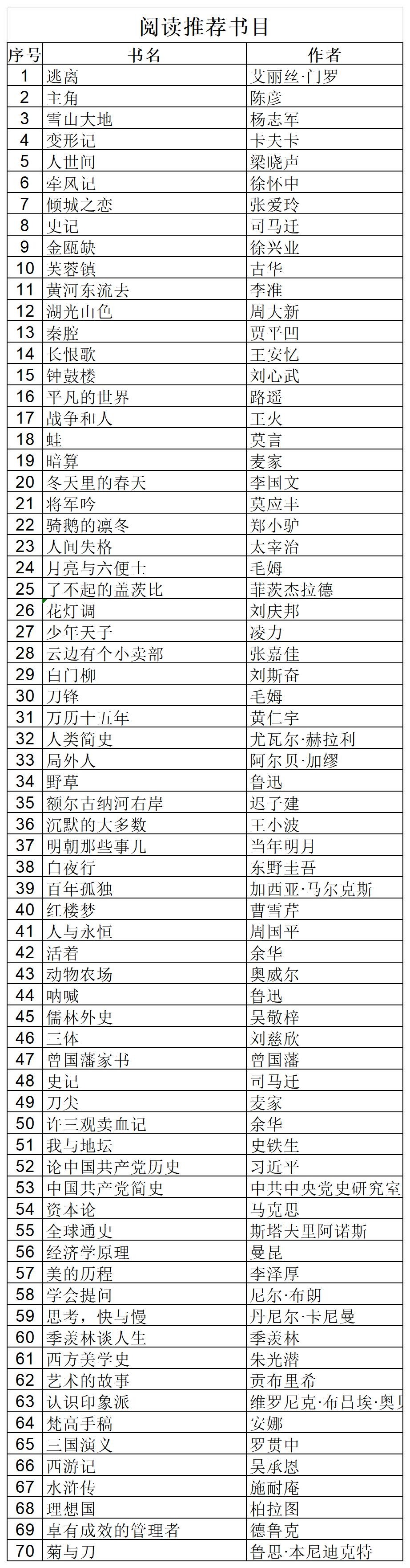 北海艺术设计学院图书馆阅读学分推荐书目清单
