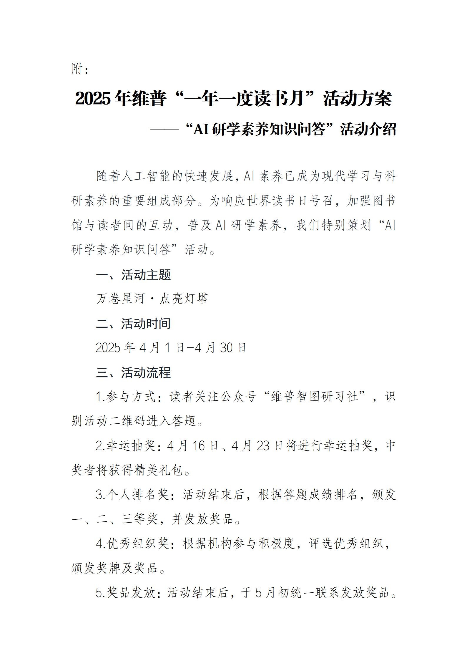 关于组织参加2025年维普“一年一度读书月”活动的通知