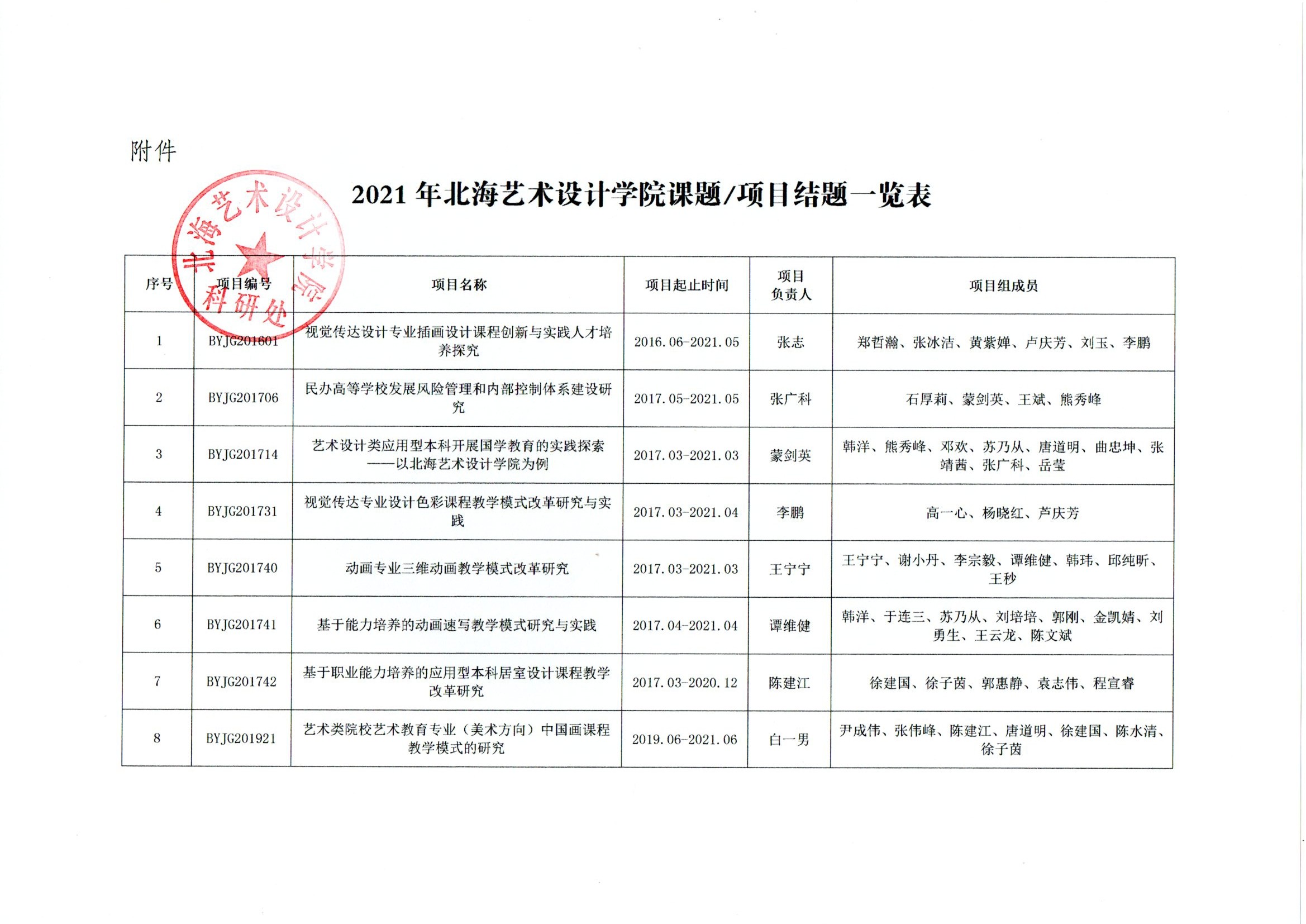 关于公布2021年校级课题/项目结题结果的通知