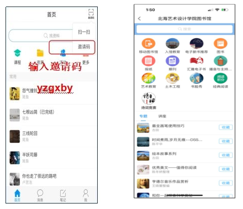 (2)在首页右上角输入邀请码,进入学校首页,点击“诗词竞答”模块即可参与答题竞赛。