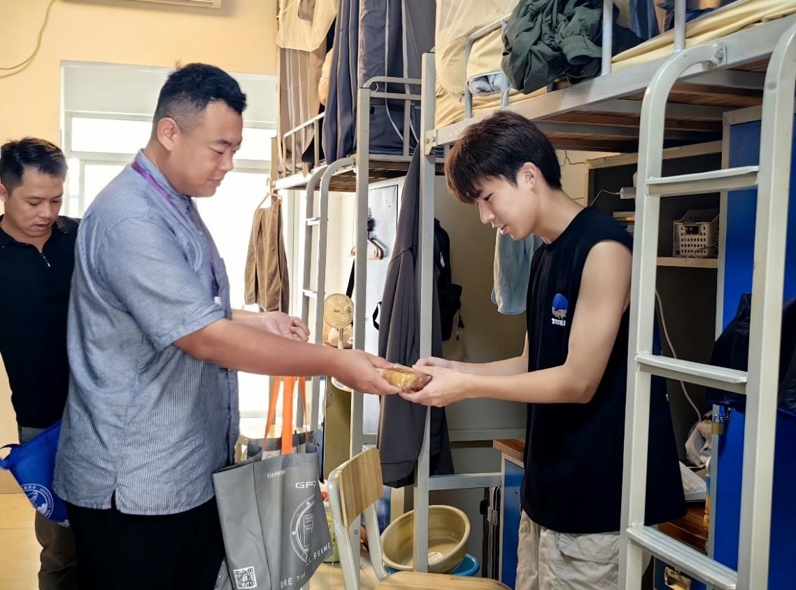 学院领导们在走访时不仅仅是将学校的中秋祝福带给每位同学,也将安全教育的理念贯彻到每位同学心中,强调了在寝室吸烟、饮酒等引发的安全问题,保持寝室卫生,和睦相处,争做文明寝室。活动拉近了学生和学校的距离,增强了学生对学校的归属感,很多学生表示,这份独有的中秋纪念月饼礼,将美院学生的心牢牢地聚在了一起,使学生倍感温暖。